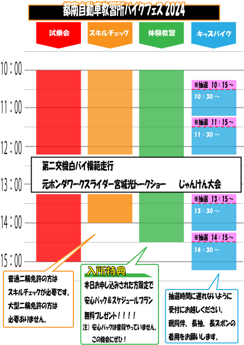 雨天の際は車両の展示とサウンド体験会に変更、バイクの試乗は中止とさせていただきます。