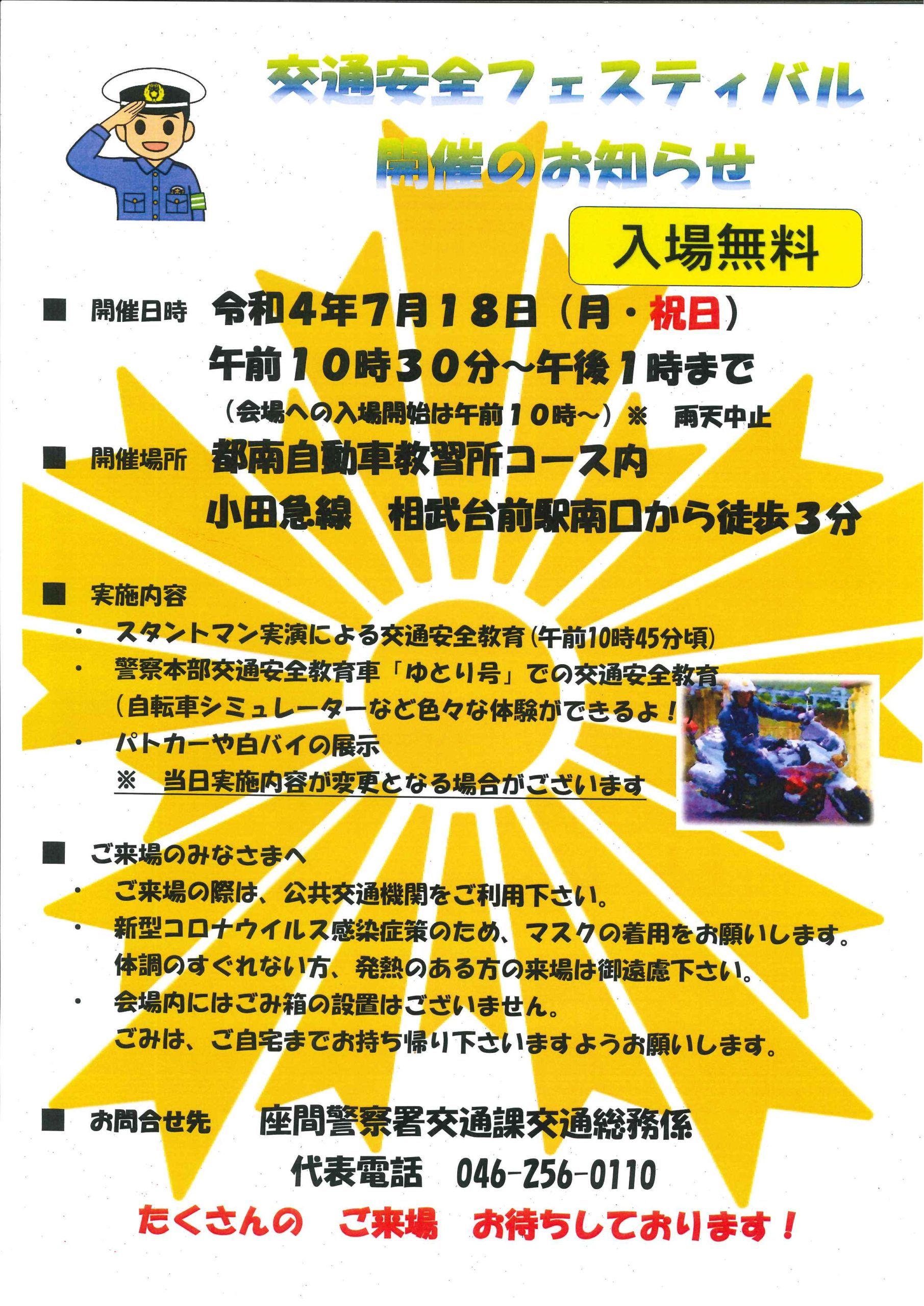 フェスティバルに関するお問い合わせ先→座間警察署交通課交通総務係℡046-256-0110