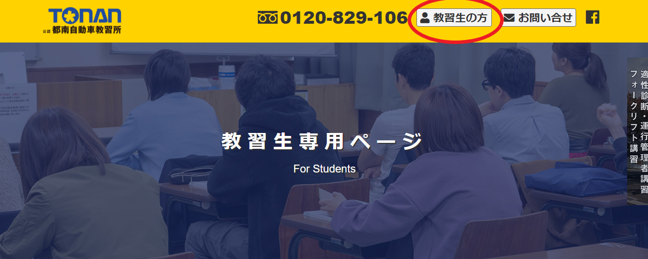 「教習生専用ページ」を開いてください。